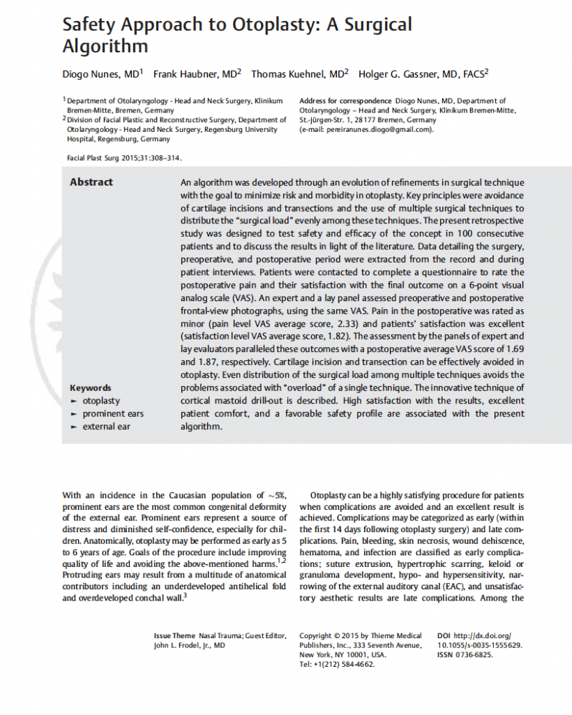 Publicação regular de artigos científicos em revistas indexadas internacionais sobre temas de Cirurgia Plástica Facial